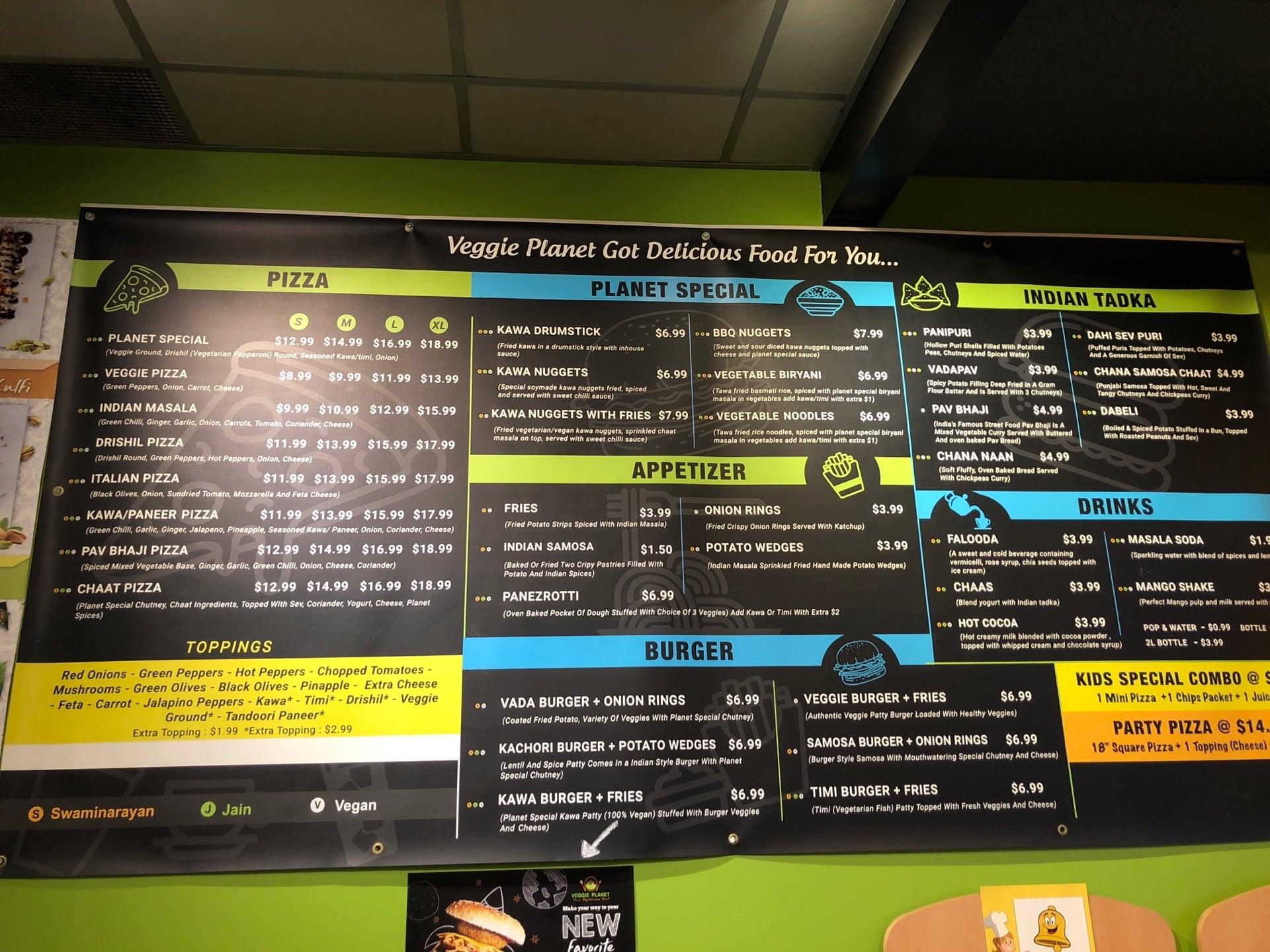 Veggie Planet is a vegetarian Indian restaurant located in Mississauga, Ontario, specializing in fresh and delicious vegetarian and vegan Indo-Western fusion food. The menu features a variety of offerings, including fusion Indian pizzas, burgers, plant-based dishes, and popular Indian street food items in a quick-service restaurant setting.