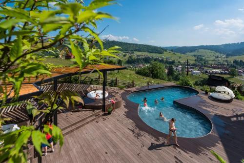 About|Featuring a sauna, a heated swimming pool and free Wi-Fi, this design hotel is located 1.2 mi from ski elevators of Bukovel Ski Resort. It offers a children’s playground and rooms with a flat-screen TV. Every room at History Hotel Bukovel includes a traditional Carpathian interior and a balcony overlooking the Carpathian Mountains. Bathrooms come with a shower. Guests can enjoy local dishes, as well as Ukrainian cuisine, in the on-site restaurant, while drinks are offered at the bar. Relaxation at History Hotel is provided by the sauna, and ski storage is also available. Palyanytsya bus stop is 1312 feet from History Hotel Bukovel, offering access to Tatariv Train Station. Ivano-Frankivsk Airport is 55 mi away.