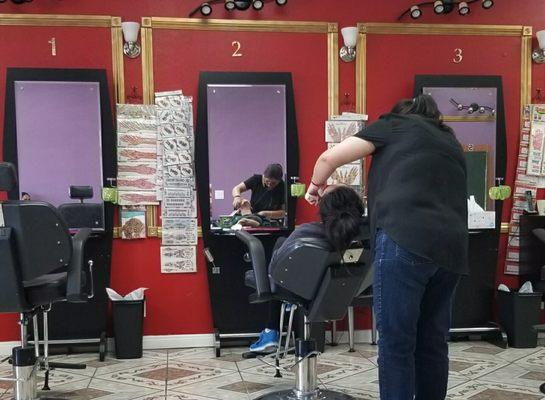 I asked one of the ladies (named Leidy) for a lob haircut that was supposed to be down to my shoulders and she chop my hair up to my chin. when she saw that I was shocked to see what she had...