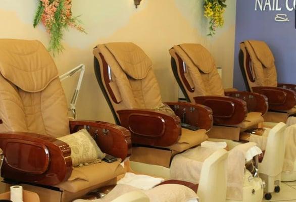 Spa pedicure with hot stones massage $23,Nails design,gel,Dip powder,wax,facial,eyelash extension,permanent makeup,massage.Free spa liner each pedicure,Guarantee sanitized clean,Free Champagne,water,Wifi,Cool Air.We use OPI products for Gel,Color with Guarantee work up to 10 days.Guarantee sanitized.Happy welcoming!