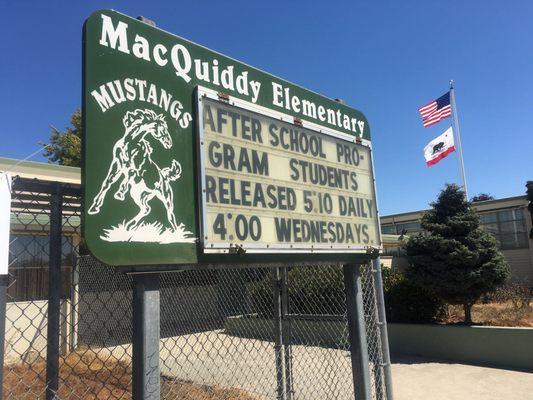 T. S. MacQuiddy Elementary School is a traditional school that offers academic classes to more than 400 students in grades kindergarten through five. It has more than 30 professional teachers that offer education in various subjects, including English, language arts, special education, math, science, social studies and physical education. The school offers a variety of student services, such as extended learning instructional technology, gifted and talented program, alternative education, transportation, food services, and community and health services. It has a technology lab that provides access to information and resources relevant to teachers and students. T. S. MacQuiddy Elementary School is operated by the Pajaro Valley Unified School District and is located in Watsonville, Calif.