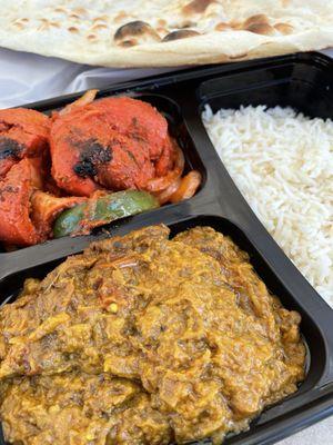 I ordered the special: Lamb Curry spinach ( saag paneer ) and garlic naan. Comes with rice. Add $2...