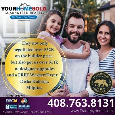 Your Home Sold Guaranteed Realty - TradeMyHome offers a Buy Before You Sell Program with Guaranteed Cash Offers and Downpayment Assistance. Unlock the equity in your current home-interest-free-allowing you to buy your next property without contingencies. This solution removes the stress of timing your sale with your purchase, giving you flexibility and peace of mind. Whether upgrading or downsizing, the program ensures a seamless transition, empowering you to move confidently.