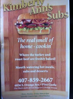 Kimbery Ann's Subs is a cozy sandwich shop nestled in the heart of Orlando, FL, offering a variety of delicious subs and sandwiches to satisfy any craving.