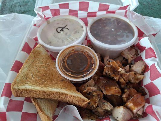 Looks like the place has changed hands and is now the Pit Stop BBQ. I tried the Pit Stop and had the smoked chicken. It was pretty good and the service was friendly. Again, it looks like this...