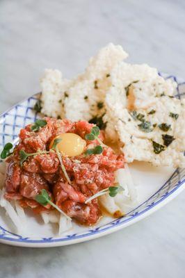 Swift & Sons is a premier steakhouse located in the heart of Chicago's Fulton Market, where the American steak tradition originated. Developed by the Boka Restaurant Group and Executive Chef Chris Pandel, the restaurant features a modern twist on classic steakhouse fare, offering top-quality meats, handmade pastas, and fresh seafood in an elegantly designed setting by world-renowned designers Avroko.