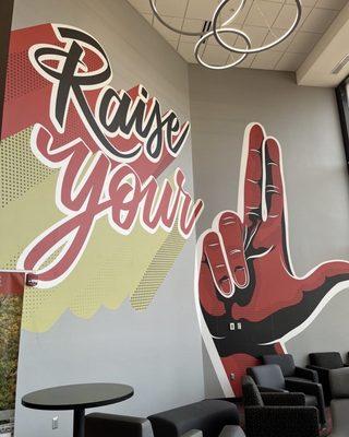 Our home is a Massive and impressive mural located in the upstairs portion of the student activities center (sac) of university of Louisville campus. Mural sports the traditional red colors of...