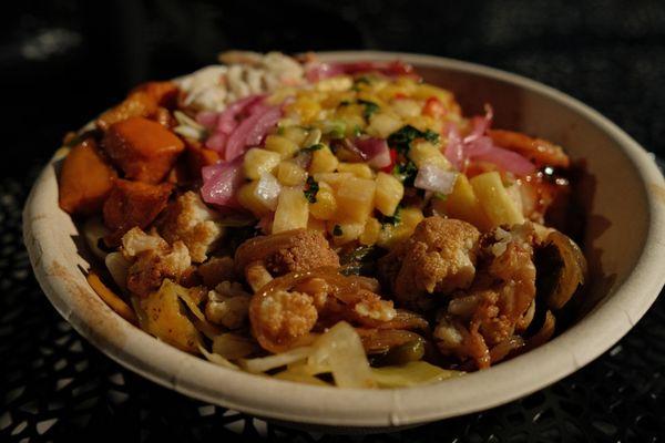 Came here to try it out. There were many people in this space. Not a lot of places to sit inside but a good amount of space outside. I had a cider that was mango and peach but I expected apple....
