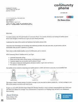 Community Phone, based in Cambridge, MA, offers a reliable phone service that operates without the need for internet, designed for both homes and businesses. With strong industrial-grade antennas and backup batteries, the company ensures clear communication even during power outages or when traditional services fail.