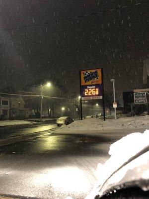 We provide great prices, immaculate interior and friendly customer service at the South St. Racing Mart, conveniently located next to Peoples Bank, we offer competitive gas prices, cigarettes at low everyday prices, and everything else you could need on your morning or evening commute.