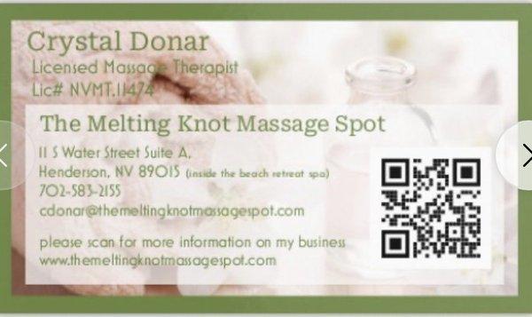 Located in Henderson NV Mary Spiller is a skilled massage therapist dedicated to providing a relaxing and rejuvenating experience. With a focus on personalized treatments she combines various techniques to address individual needs ensuring each client leaves feeling refreshed and revitalized. Whether you're seeking relief from tension or simply looking to unwind Mary's tranquil studio offers the perfect escape.