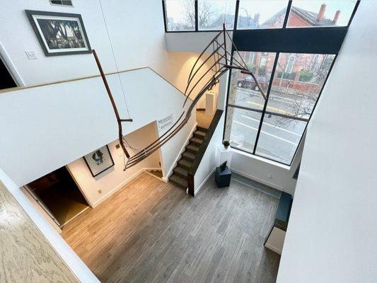 57 U Studios is a contemporary commercial building located in downtown Rochester, designed to facilitate business growth with its spacious 2,400 square feet and a striking open atrium entrance that floods the interior with natural light. The building offers a professional yet inviting atmosphere, making it an ideal setting for client meetings and everyday operations.