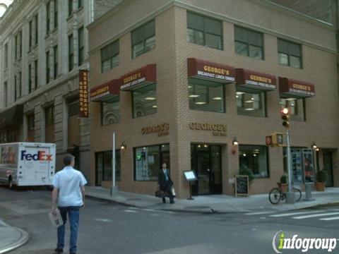 George's Restaurant has been a staple in New York City since 1950, serving breakfast items such as omelets, pancakes, and a variety of short-order dishes. Located at the corner of Greenwich and Rector Streets, it offers a welcoming atmosphere for patrons to enjoy their meals in a relaxed setting. Known for its generous portions and friendly service, George's has become a beloved spot for locals and visitors alike.