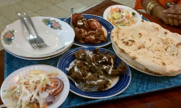 I went to the 259th Street Hillside Location. I ordered the beef kabab and fish curry with 4 garlic naan, a mango lassi, and Diet Coke. It came out to be $48 and change. They had a lot of meat...