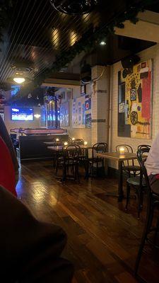 Fun bar to watch sports! We came from Seattle & had our own little corner for the Mariners playoff game. Bar was decorated for Halloween as well which was fun.