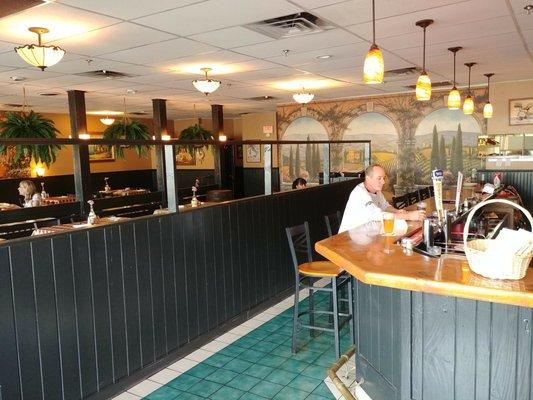 Typical Subway layout. This is a clean location located in a strip plaza. The staff was friendly and the eating booths are idea for younger kids.