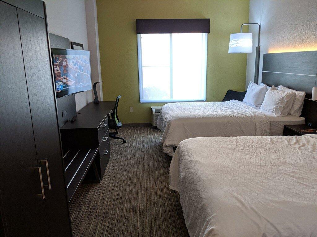 Pretty hefty price tag for this particular holiday inn express. And it isn't particularly nifty or not nifty. Clean enough. But things not in good condition (like broken blinds). Lacks lighting...