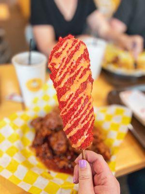 K Stop is a fast-casual restaurant in Winston Salem, NC, that specializes in Korean street food. Their menu features popular items like the Korean egg toast sandwich, Korean fried chicken, Korean corn dogs, and tteokbokki, a dish made with sweet, spicy, and savory rice cakes. Customers have the option to add egg and cheese toppings to their tteokbokki for an enhanced experience.