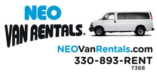Convenience. Reliability. Affordability. Those are the hallmarks of NEO Van Rentals.We make it easy for you to rent a van with our convenient satellite pick-up and drop-off locations throughout Northeast Ohio-including one of the newest locations in Danville. We allow for after-hour drop-offs and you can leave your vehicle at our location during the rental.Unlike the national car rental companies that offer a big selection of cars and just couple vans, our niche is van rentals and larger SUVs. So if you have a large family, a corporate outing or just want a more spacious vehicle with more legroom and luggage space, then we are your go-to source for auto rentals. Choose from Ford, Chevy, RAM, Kia and Dodge vehicles. From our large 15-passenger van rentals and 12-passenger van rentals to full-size SUVs and roomy minivans, our rental vehicles are meticulously cleaned and maintained. And we allocate a vehicle specifically to you so that we are never overbooked. Though we do not have cheap car rentals, we have very competitive pricing including custom lease options for customers who need a vehicle for a longer timeframe. So whether you are a family bound for a trip, a travelling sports team driving to a tournament, or need a mobility van to get around, rent a van from us and see why our auto rental business is the best in town.