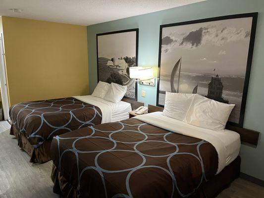 Clean room and pretty good price. Not a whole lot of available channels a on the tv. Thin Towels as you would expect. I bring my own. Bathroom tissue wound the wrong way. I do not know why...