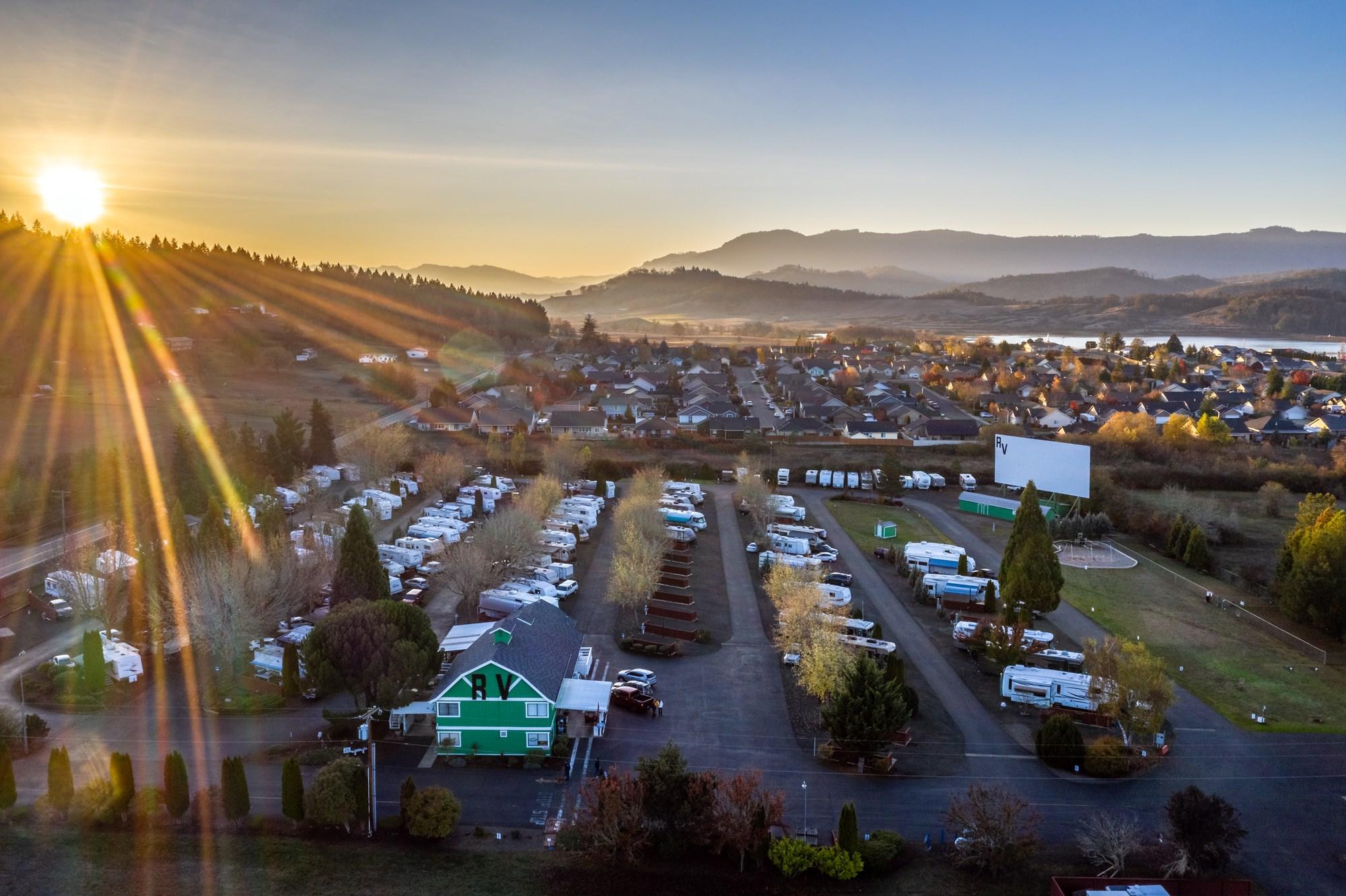 Welcome to the Sutherlin / Umpqua Valley KOA Holiday, where your RV camping experience in Sutherlin, Oregon, promises a unique twist – stay at the Movies! Picture yourself stepping back in time to the charm of an old-fashioned drive-in movie setting right here at our campground. Imagine the nostalgia as you grab some popcorn, cozy up by our community fire pits, and immerse yourself in the magic of a drive-in movie night. Opt for one of our Premium Movie Sites for a personalized viewing experience from the comfort of your own rig. The history of this campground adds an extra layer of charm, as it was established on the grounds of the iconic Cloverleaf Drive-In, offering guests the chance to relive the golden age of cinema under the stars.