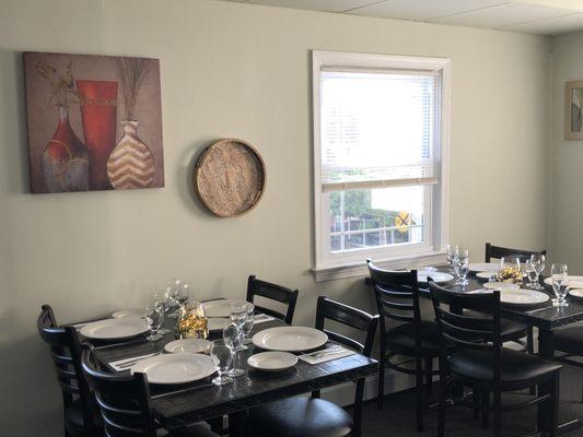 Small casual restaurant, small menu, very nice staff, good food. My mustard glazed pork sandwich with coleslaw and fries was delicious. Saw someone's BLT and it looked great. Rivalry shows...