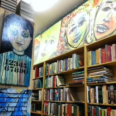 Very super awesome cool bookstore. Just a warm and welcoming vibe. A huge selection of eclectic tomes, vinyl, paintings, shorts and memorabilia. The books are nearly presented and well organized....