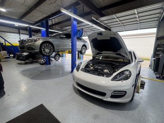If you are looking for an automotive repair facility that can service your European or high-end import vehicle without breaking your wallet, your search is over! Conveniently located on Preston Rd, we service Frisco & the surrounding areas. We have combined experience of over 30 years working on European vehicles. We have the knowledge and advanced diagnostics equipment to diagnose your vehicle right the first time and in a timely manner. Whether you need a light bulb installed on your BMW or a complete engine overhaul on your Maserati, our skilled and certified technicians can handle & will treat your vehicle as if it were our own. We offer free Wi-Fi, complimentary juice, water, gourmet coffee and a comfortable waiting area. We also offer shuttle service, discounted rentals & loaner cars when available. Just think of us as your neighborhood concierge service!