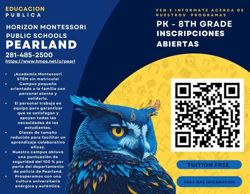 Horizon Montessori Public Schools STEM Academy is a tuition-free public charter school located in Pearland, Texas, offering an integrated Montessori curriculum for students in grades PreK through 8th. Established in 1998, the academy emphasizes personalized learning, allowing students to progress at their own pace through various blended learning opportunities.