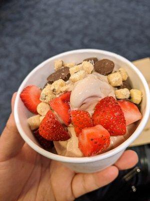 At Pinkberry, Dallas TX our distinctive frozen yogurt is created by selecting and combining fresh ingredients. Top off your swirl with fresh fruit, handcut daily, or some of our other delectable toppings.