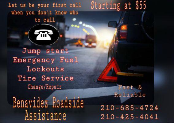 Roadside Assistance in San Antonio, TX is what Roadside Rescue SA does best. We offer lockout service, battery replacements, jump starts, tire changes, gas delivery, car unlocking, stripped lug nut removal, mobile tires, & other services that complement everyday roadside emergencies. For all your roadside service needs. Serving: San Antonio, TX and the surrounding areas. If you get a flat tire, lock your keys in your car, run out of fuel or find that you have a dead battery, don't worry, we can be there in minutes to save the day. No matter what roadside assistance service you need, we will get the job done, or we will refer someone who can. Let's get you back on the road! We are open 24/7.